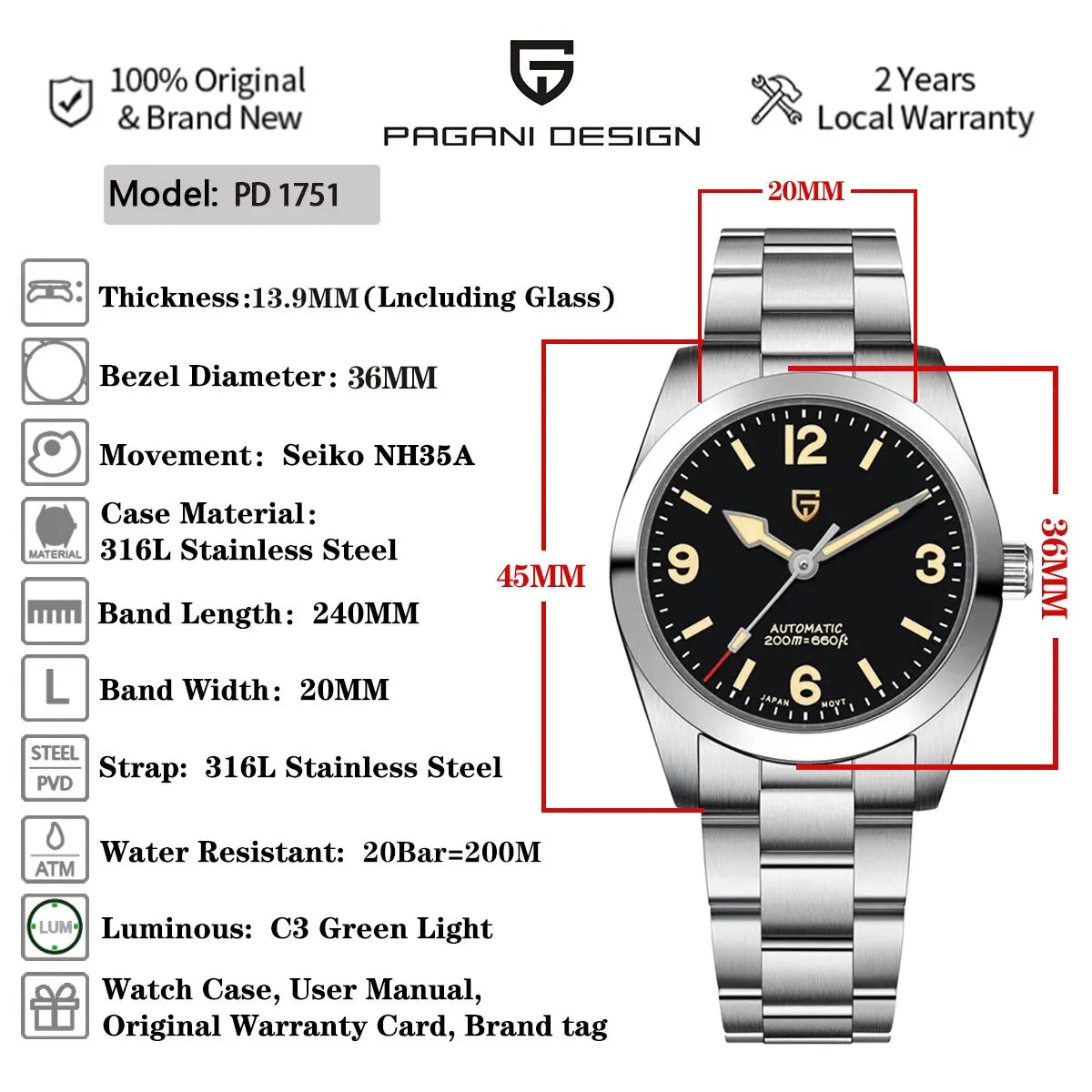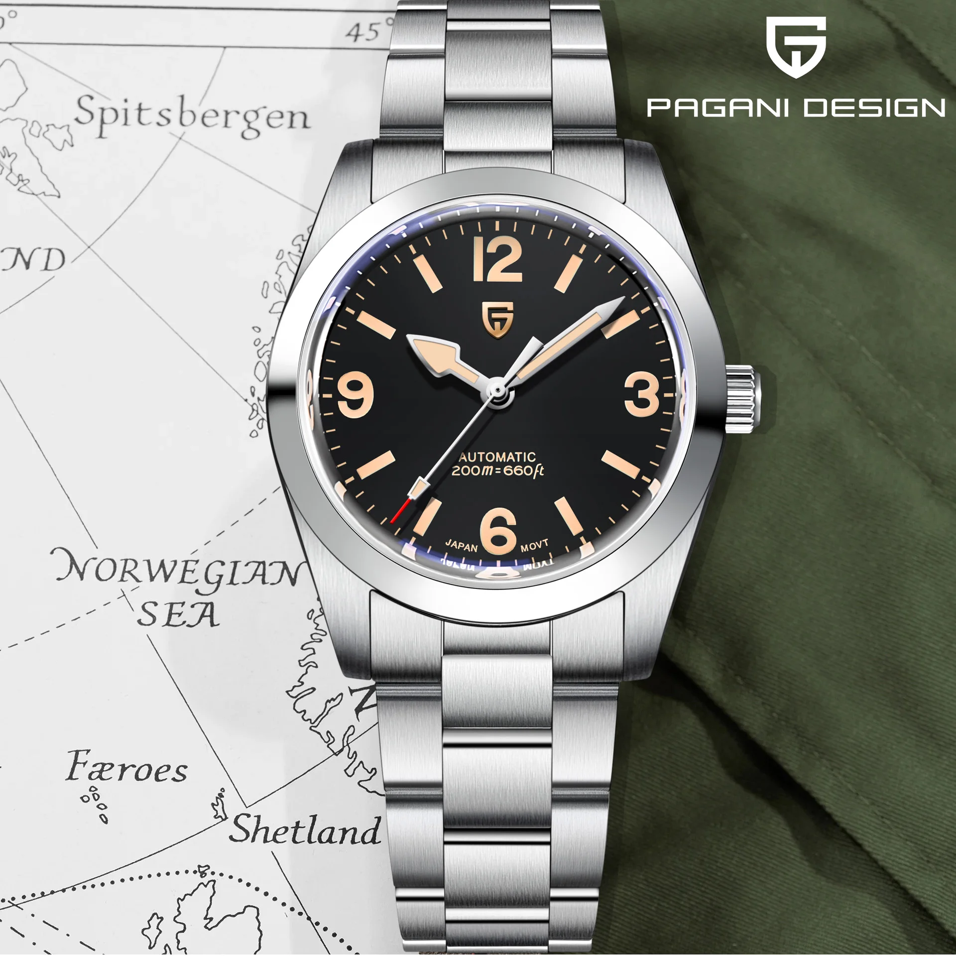 PAGANI DESIGN 2024 New 36MM Men Automatic Mechanical Watches NH35 Sapphire Stainless Steel AR Coating 20Bar Clock Watch for Men
