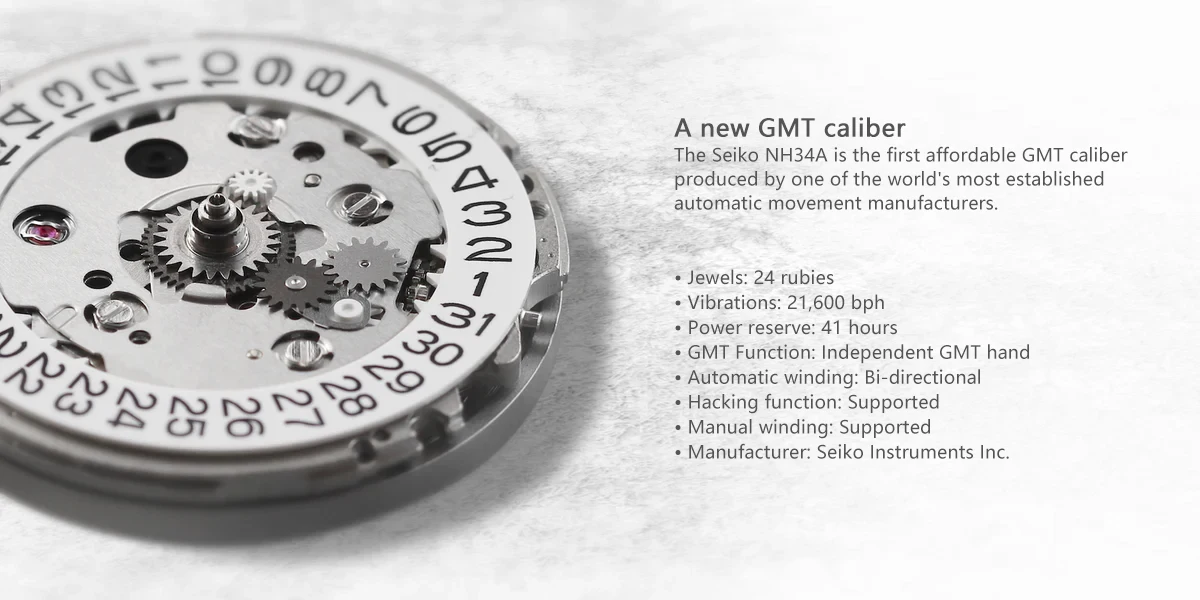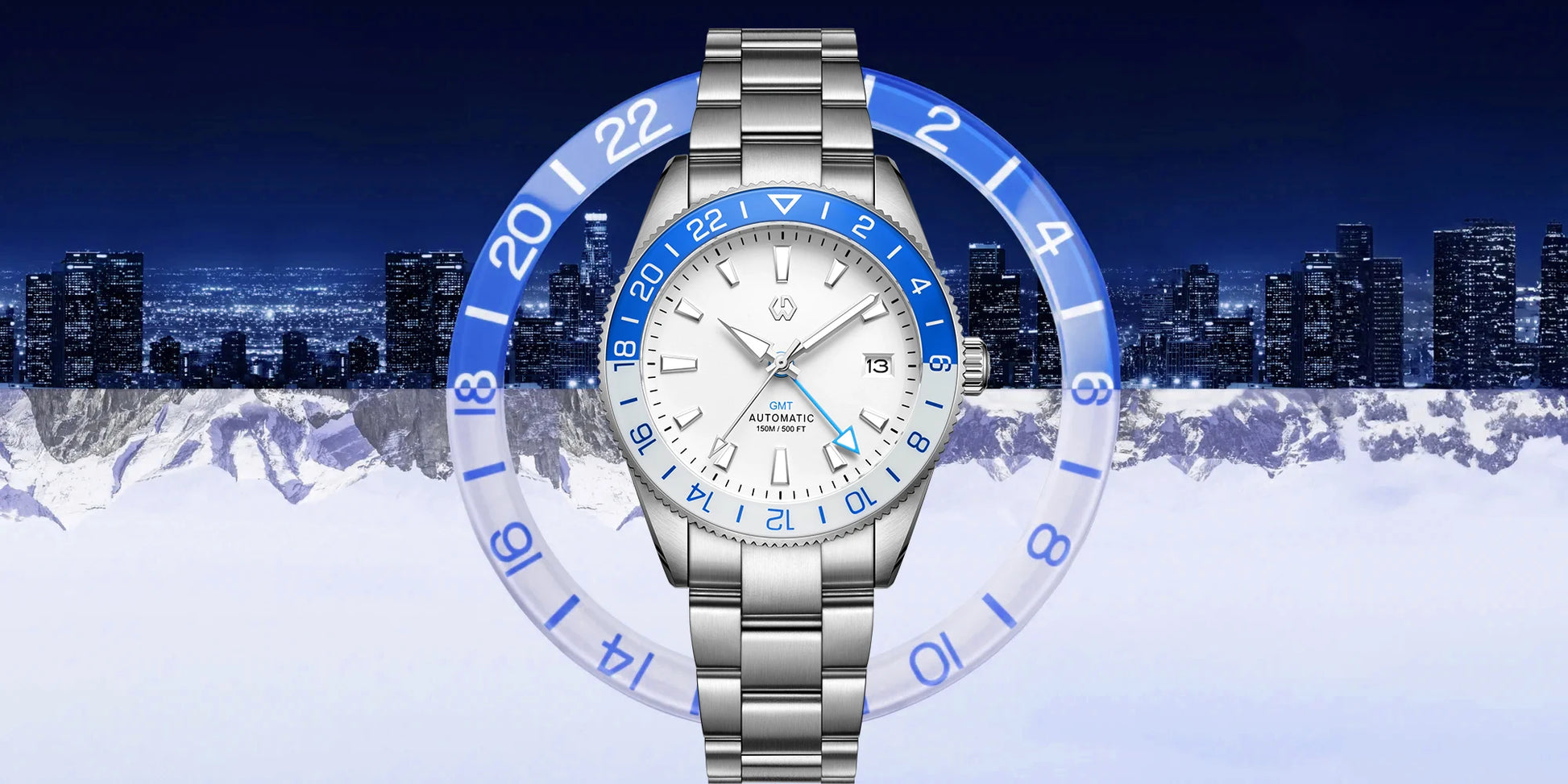 WISHDOIT New NH34 Men's Sports Automatic Mechanical GMT Sapphire Stainless Steel Waterproof 15 ATM With Rubber Strap